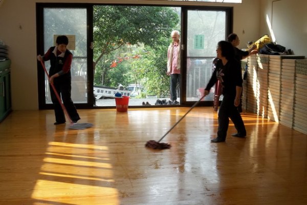 在聖山有人在作大掃除工作清潔祈禱室.會客室.視聽教室.