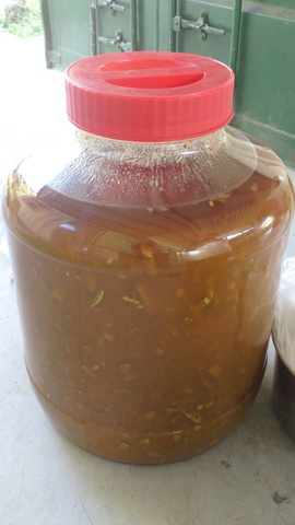 今日幫同修收成酵素,看著罐上的標籤2012年5月,哇!這是一罐已經放了1年7個月南瓜酵素,而且純天然不添加任何防腐劑,聽同修說在製作的過程中必須要非常小心,不可以有任何的水份進入,而且要定時的攪拌才行,如不小心呵護就很容易失敗。這種純天然的酵素長期喝,對身體的健康是很有幫助的,如同台灣神的信仰對身體也是具有非常強大的正面能量一樣。
